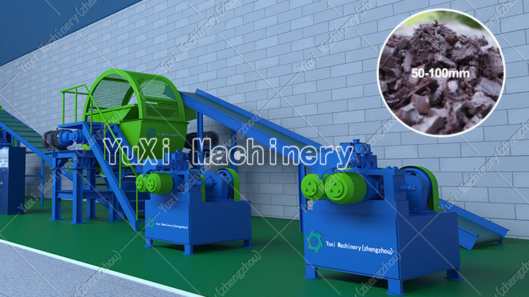 Pre-crushing Shaping Machine: With a motor power of 132-185kW, it adopts an arc-shaped pressure roller design to adapt to waste tires of different diameters (14-24 inches). It crushes complete tires into regular block materials of 120-180mm, avoiding jamming problems in subsequent crushing processes;