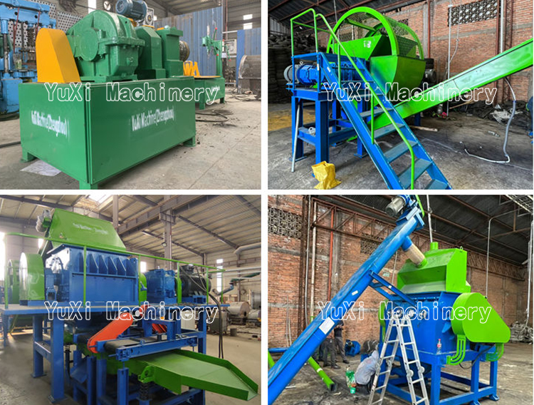 Primary Crusher: With a motor power of 90-132kW, it crushes complete end-of-life tires into 80-120mm tire blocks and initially peels off the surface rubber;