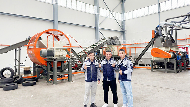 Produce car tires from waste tires with twin screw shredder, grator, granulator.